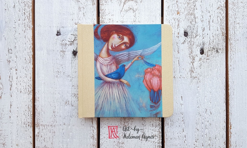 • 13 x 13 cm méretű határidőnapló, a borítón Angyali érintés című festményem matt fóliával borítva.