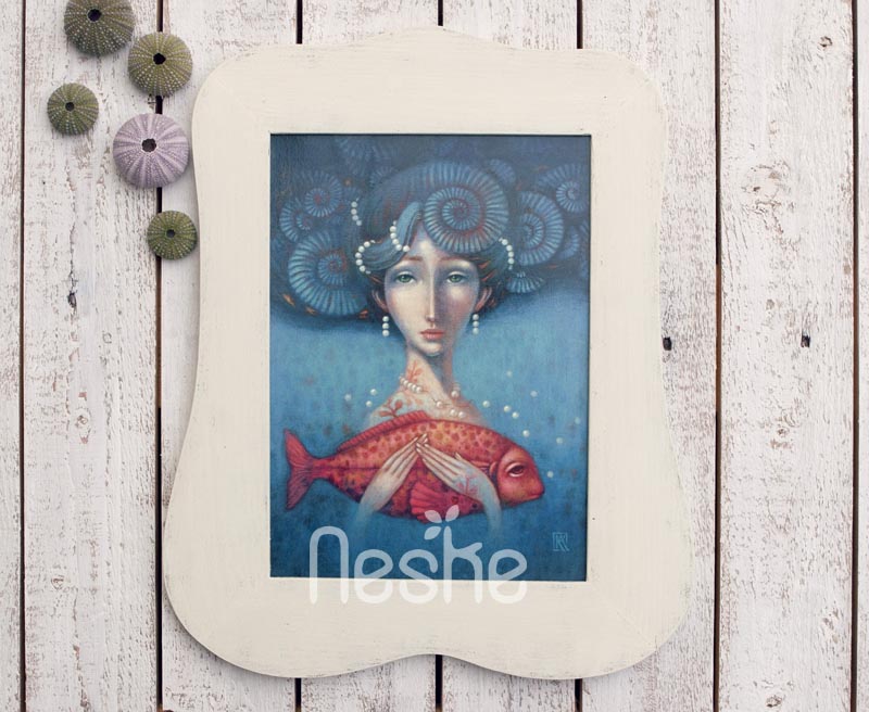 Ölelés című akrilfestményem alapján készült professzionális, szignált nyomat, antikolt festésű, fa keretben. A nyomatot karton lemezre kasíroztam, UV védő akril lakkal vontam be, hogy hosszútávon megőrizze élénk színeit.