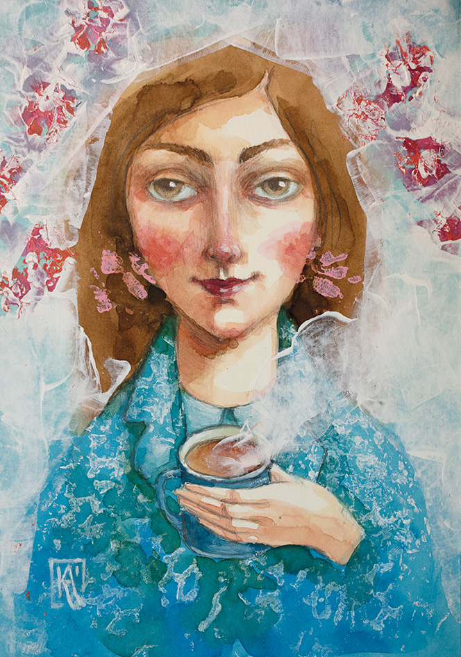 NŐI LÉLEKMINTÁK sorozatom képei a szokásostól eltérően jóval kisebb méretben készültek, a képek mérete ugyan kicsi, de nem úgy az ambícióm és a lelkesedésem, mert ez lett az eddigi legnagyobb sorozatom, a sorozat darabszámát (10 kép) tekintve. Ráadásul azért is izgalmas ez a magam számára állított kihívás, mert most vegyes technikával festettem ezeket a kis portrékat – grafittal, akvarellel és akrillal –, ami kimozdított a komfort zónámból, nem a megszokott úton járok, kísérletezek, engedem, hogy a különböző eszközök, festékek egymásra hatásából keletkező izgalmas felületek és textúrák a maguk módján gazdagítsák a képet.