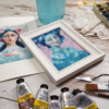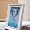 NŐI LÉLEKMINTÁK sorozatom képei a szokásostól eltérően jóval kisebb méretben készültek, a képek mérete ugyan kicsi, de nem úgy az ambícióm és a lelkesedésem, mert ez lett az eddigi legnagyobb sorozatom, a sorozat darabszámát (10 kép) tekintve. Ráadásul azért is izgalmas ez a magam számára állított kihívás, mert most vegyes technikával festettem ezeket a kis portrékat – grafittal, akvarellel és akrillal –, ami kimozdított a komfort zónámból, nem a megszokott úton járok, kísérletezek, engedem, hogy a különböző eszközök, festékek egymásra hatásából keletkező izgalmas felületek és textúrák a maguk módján gazdagítsák a képet.